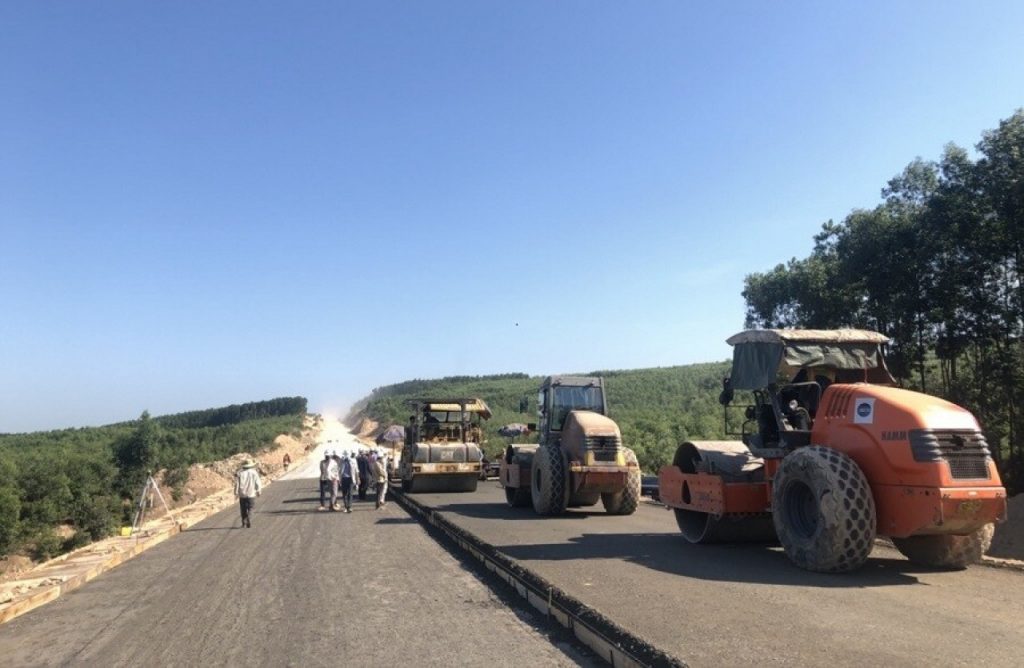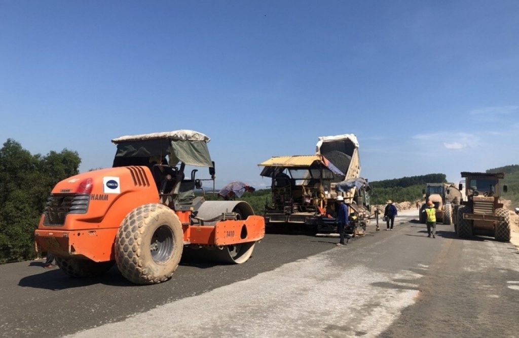 Thi công lớp CPĐD gia cố xi măng tại Gói XL-01 đoạn Cam Lộ – La Sơn dự án đường cao tốc Bắc – Nam – Điểm mốc quan trọng đánh dấu những nỗ lực của Chủ đầu tư và các Nhà thầu thi công dự án, thiết thực chào mừng ngày bầu cử Quốc Hội khóa XV và Đại biểu HĐND các cấp nhiệm kỳ 2021 -2026. (Nguồn: baogiaothong.vn)